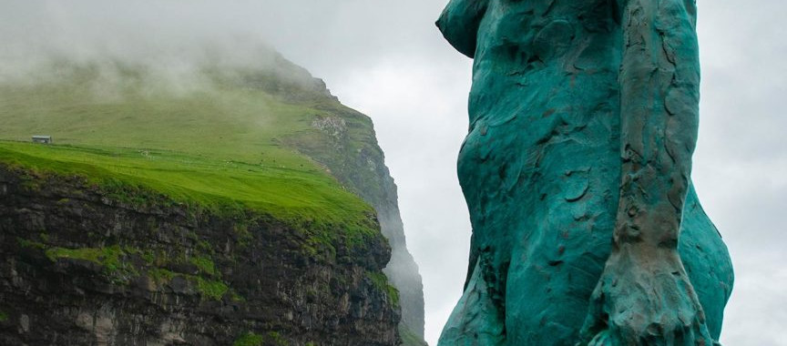 Bellísima es la leyenda de las Islas Feroe que habla de cómo algunas personas deciden vivir su vida para siempre en el océano, enfundadas en una preciosa piel de foca. Kópakonan era una de esas mujeres-foca. Una vez al año, liberadas de su piel de foca, esas personas, de nuevo hombres y mujeres por un día, bailaban y celebraban la vida. Una de esas noches, un pescador se enamoró de una mujer foca y decidió robarle la piel para evitar que volviera al océano. Durante muchos años, Kópakonan vivó como mujer, sometida a la voluntad de su marido pescador, con quien tuvo a sus hijos hijos. Mientras, su piel de foca permanecía en un baúl cuya llave era custodiada por él. Un día el pescador olvidó la llave y eso supuso para Kópakonan dos sentimientos enfrentados: su tristeza por separarse de sus hijos y su felicidad por volver a ser ella misma. El mito, sigue, con la venganza del pescador y la maldición que Kópakonan lanzó contra todos los habitantes de la isla. La estatua que homenajea su mito, la maldición de Mikladalur y el respeto a la diversidad y a la libre elección es el lugar más fotografiado de las Feroe y no me extraña. Las Feroe son uno de los lugares más remotos y más hermosos del planeta, doy fe, pero el emplazamiento de esa escultura, las olas rompiendo, la luz del Norte más septentrional... abruma.